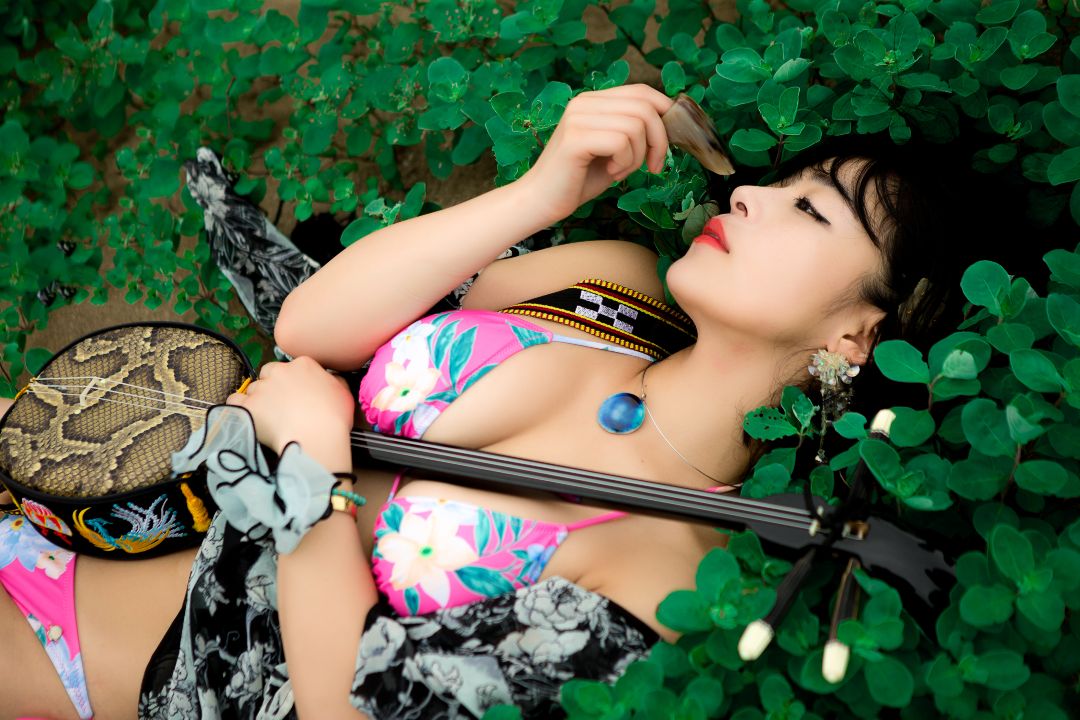千尋的比基尼搭配著三線,呈現出非常不同日式風味