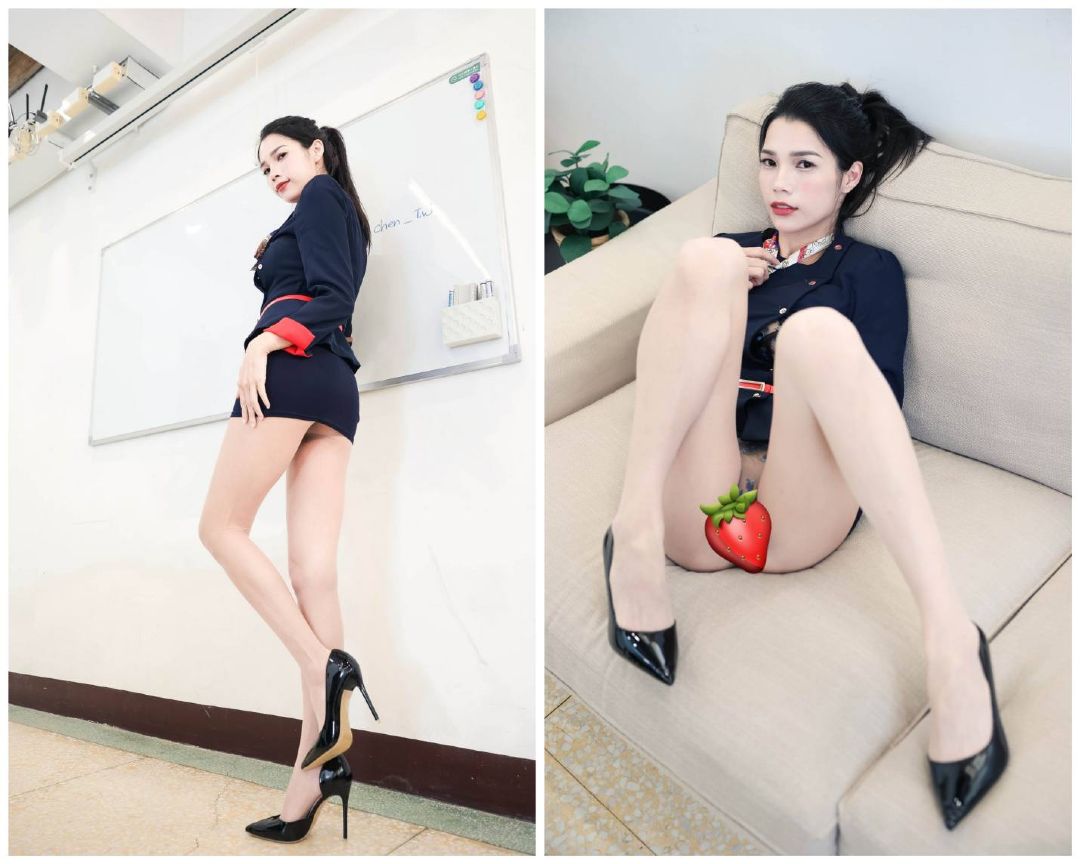 [4K] 漢娜-深藍空姐套裝絲襪美腿搭配黑色內衣小丁