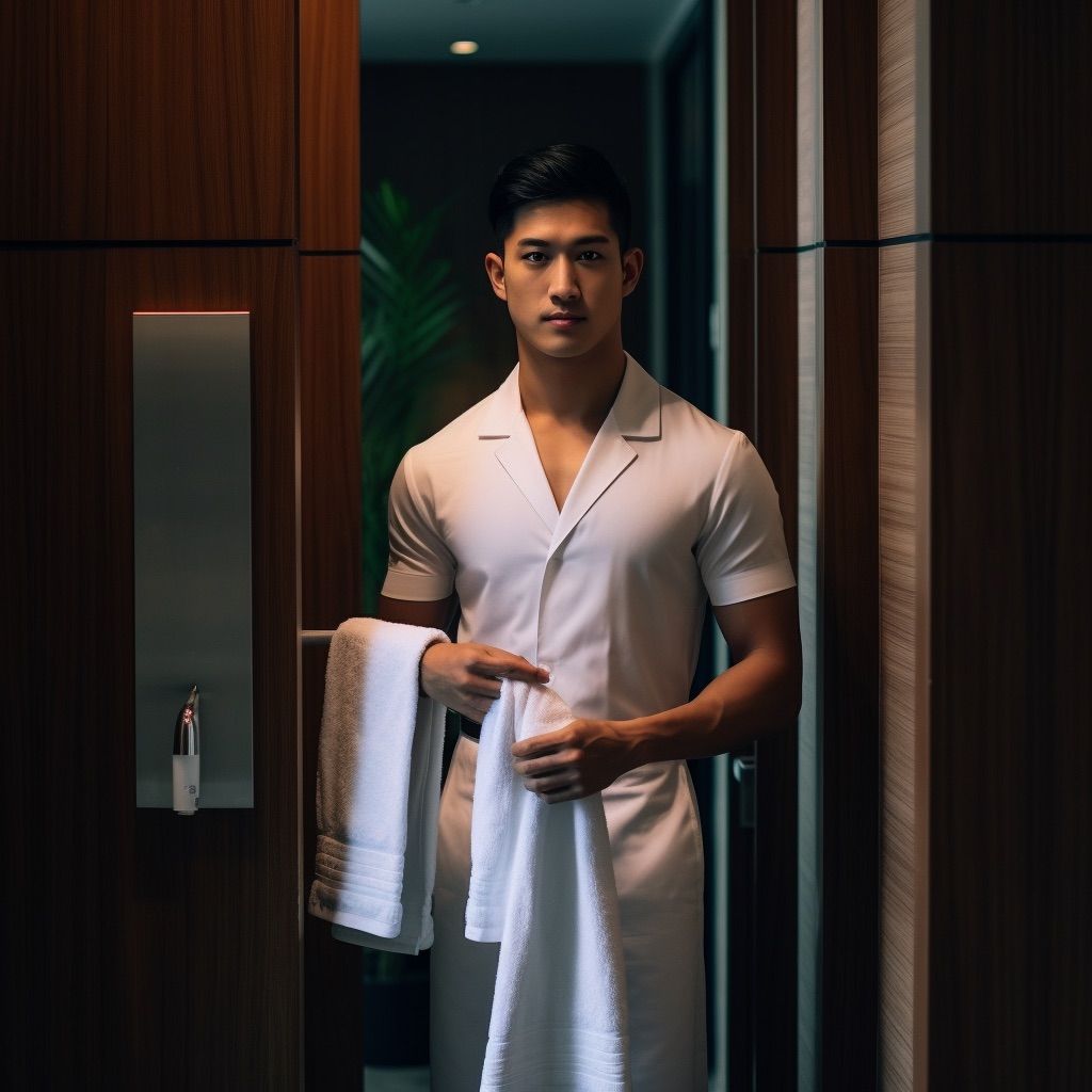 在飯店夜晚洗澡時,突然發現房間內沒有放浴巾,打電話給櫃台請他們補送,結果來了一個小鮮肉,好像可以讓他提供一些特殊的客房服務
