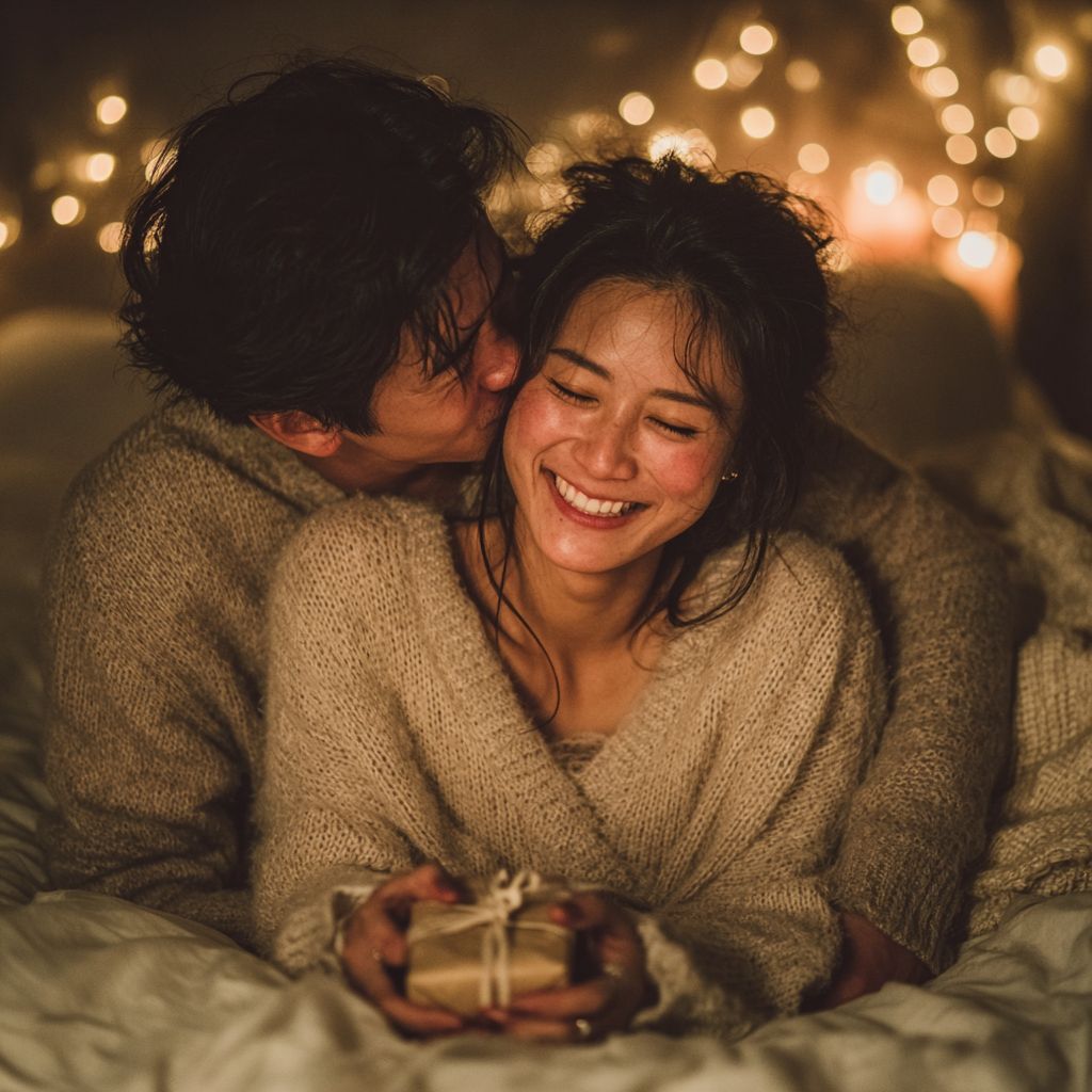 聖誕派對結束後,妳們回到家裡,還帶著剛剛的紅暈與心跳,一起躺在床上,妳靠在他懷裡,聽著他在妳耳邊低語,手裡打開那個他早就準備好的聖誕禮物,這一刻只有妳擁有他全部的溫柔與疼愛…