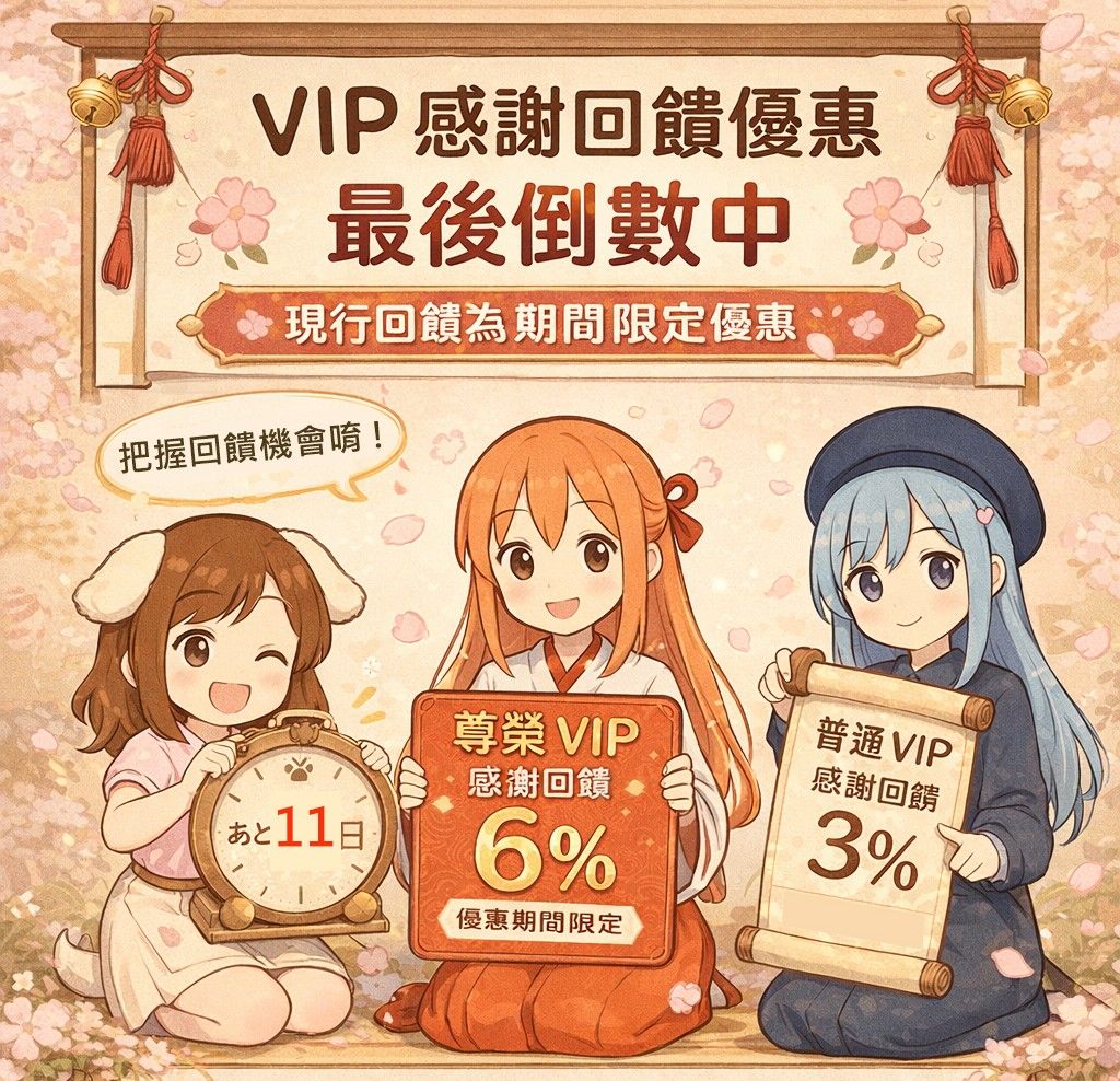 • 🎐 普通 VIP|3% 感謝回饋