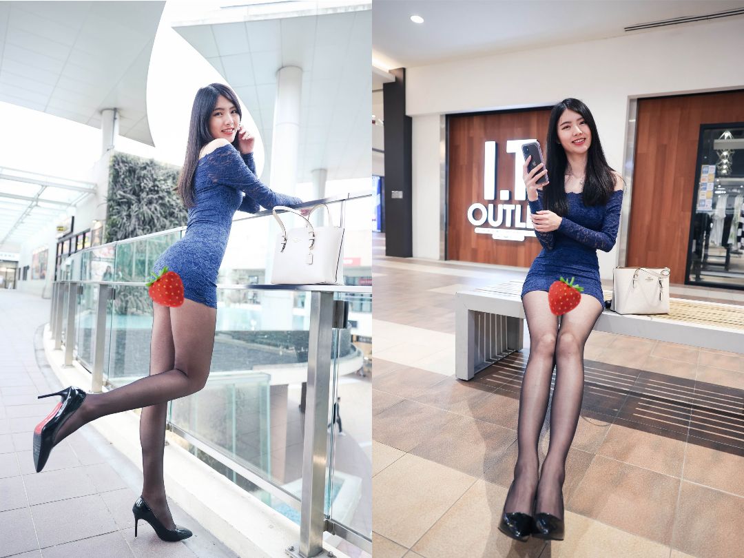 [4K] 穿黑絲逛Outlet~長腿一覽無遺,路人都盯著我看...你也是嗎🙈